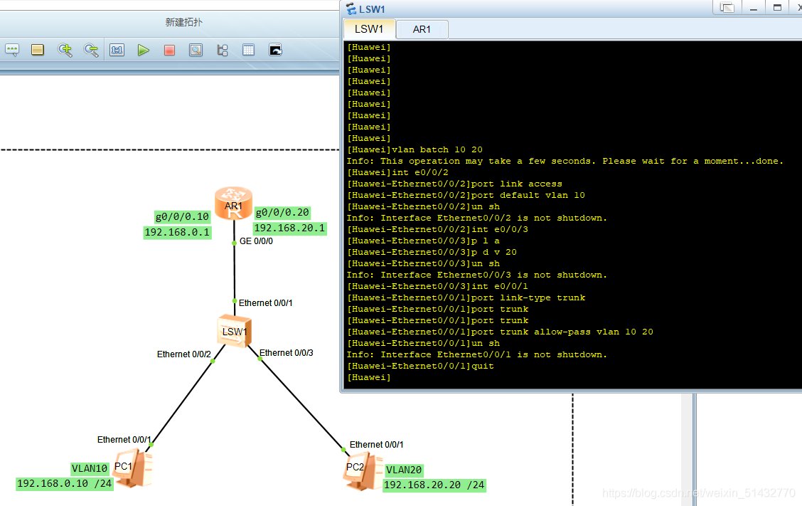 【R1-GigabitEthernet0/0/0.20】dot1q termination vid 20