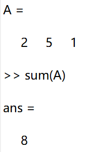 对于一维数组(行向量)或者列向量,使用 sum( A ) 即可对该数组求和。