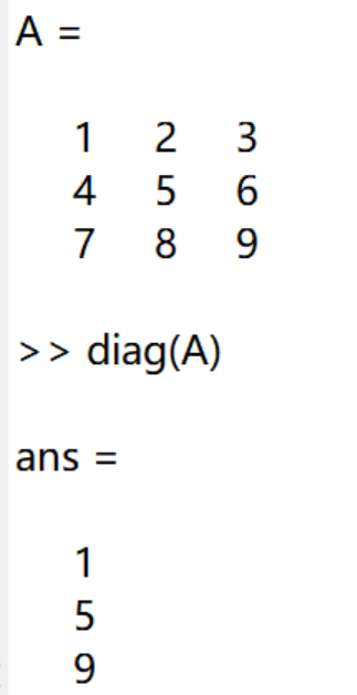 1.A为一数组,diag(A)将A中对角线上的元素作为向量返回