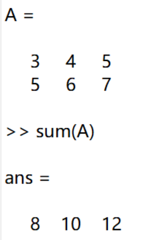 对于二维数组,使用sum(A)会返回一个向量,为A中每一列的和。