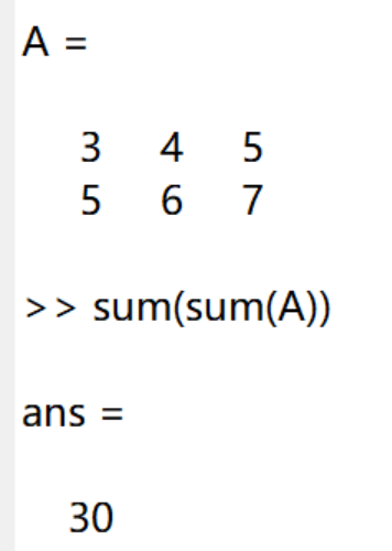 如果要计算整个二维数组的和,可以使用sum(sum(A))