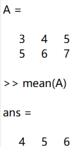 对于二维数组,使用mean(A)会返回一个向量,为A中每一列的平均数。