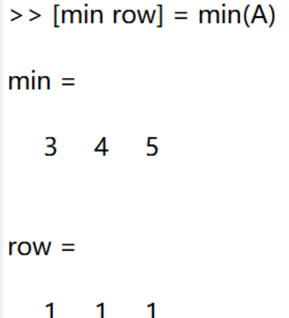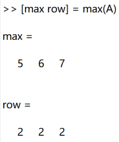 min()与max()返回两个行向量:每一列的最大值或者最小值以及它们在每一列中出现的行号。