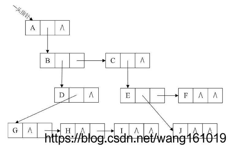 - 把每个结点的孩子结点排列起来,以单链表作存储结构,则n个结点有n个孩子链表,如果是叶子结点则此单链表为空。然后n个头指针又组成一个线性表,采用顺序存储结构,存放进一个一维数组中