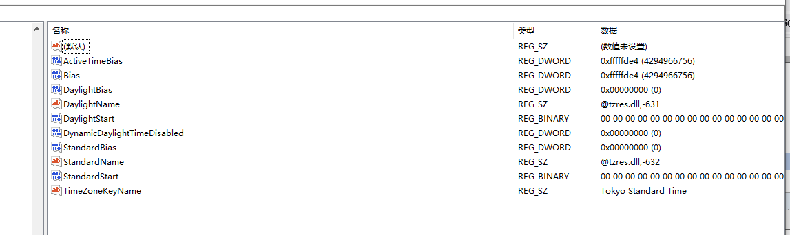 计算机\HKEY_LOCAL_MACHINE\SYSTEM\CurrentControlSet\Control\TimeZoneInformation