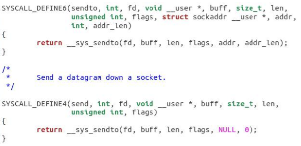 根据上述分析可知,发送端首先创建socket,创建之后会通过send发送数据。具体到源码级别,会通过send,sendto,sendmsg这些系统调用来发送数据,而上述三个函数底层都调用了sock_sendmsg。见下图: