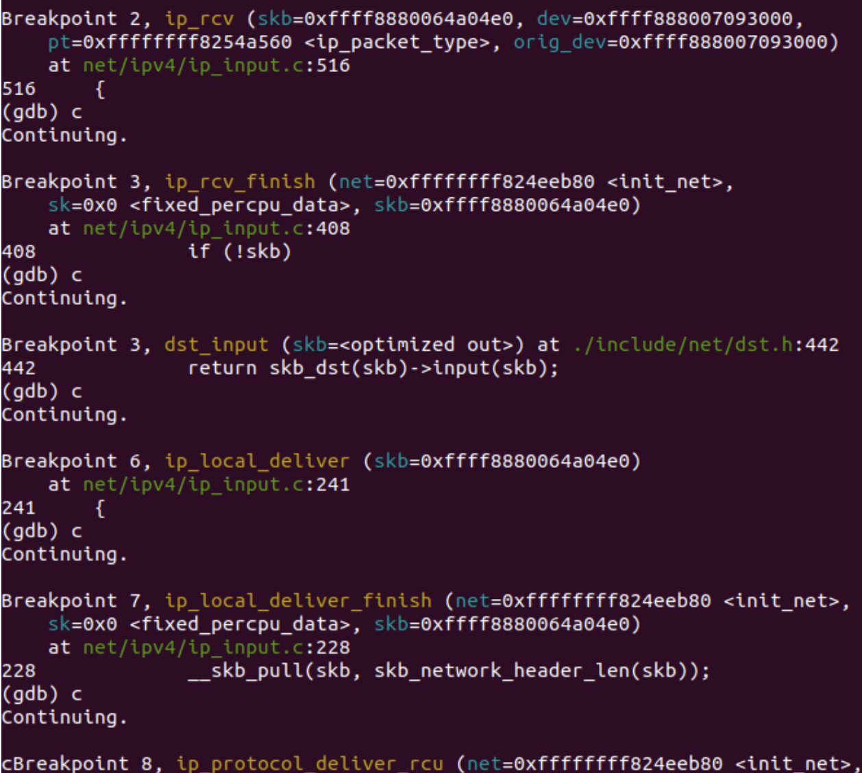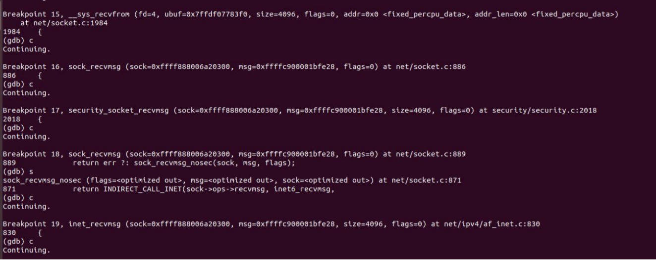 至此接收端调用分析完毕,下面用gdb打断点进行验证:
