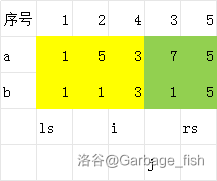 如图,\(i\) 找到第一个比 \(j\) 的 \(b\) 大的,这说明 \([ls, i-1]\) 的都是满足我们的要求的。