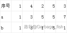 先将序列按 \(a\) 为第一关键字,按 \(b\) 为第二关键字排序。
