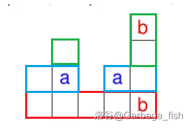 以样例为例,从下往上看,按如图方式划分成若干矩形。