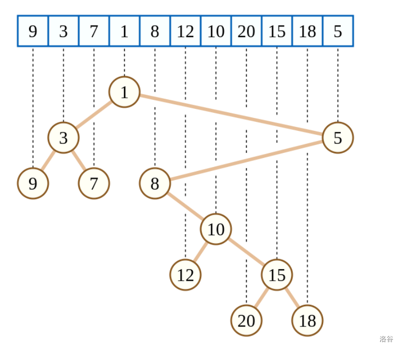 这一题中节点权值 \(p_i\) 即为上面所说的 \(x_i\),节点编号 \(i\) 即为上面所说的 \(y_i\)。