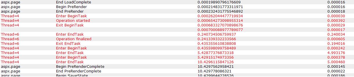 Trace.Warn("custom message","Begin async:thread=" + Thread.CurrentThread.ManagedThreadId.ToString());
