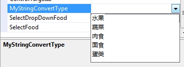 在这个自定义属性中,我继承StringConverter并通过返回一个string数组来实现下拉:
