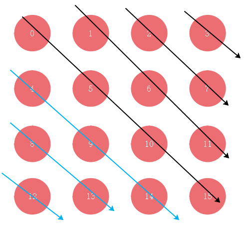 有一个二维数组 (n*n) ,写程序实现从右上角到左下角沿主对角线方向打印。(注:主对角线方向为从左上角指向右下角这一斜线的方向)