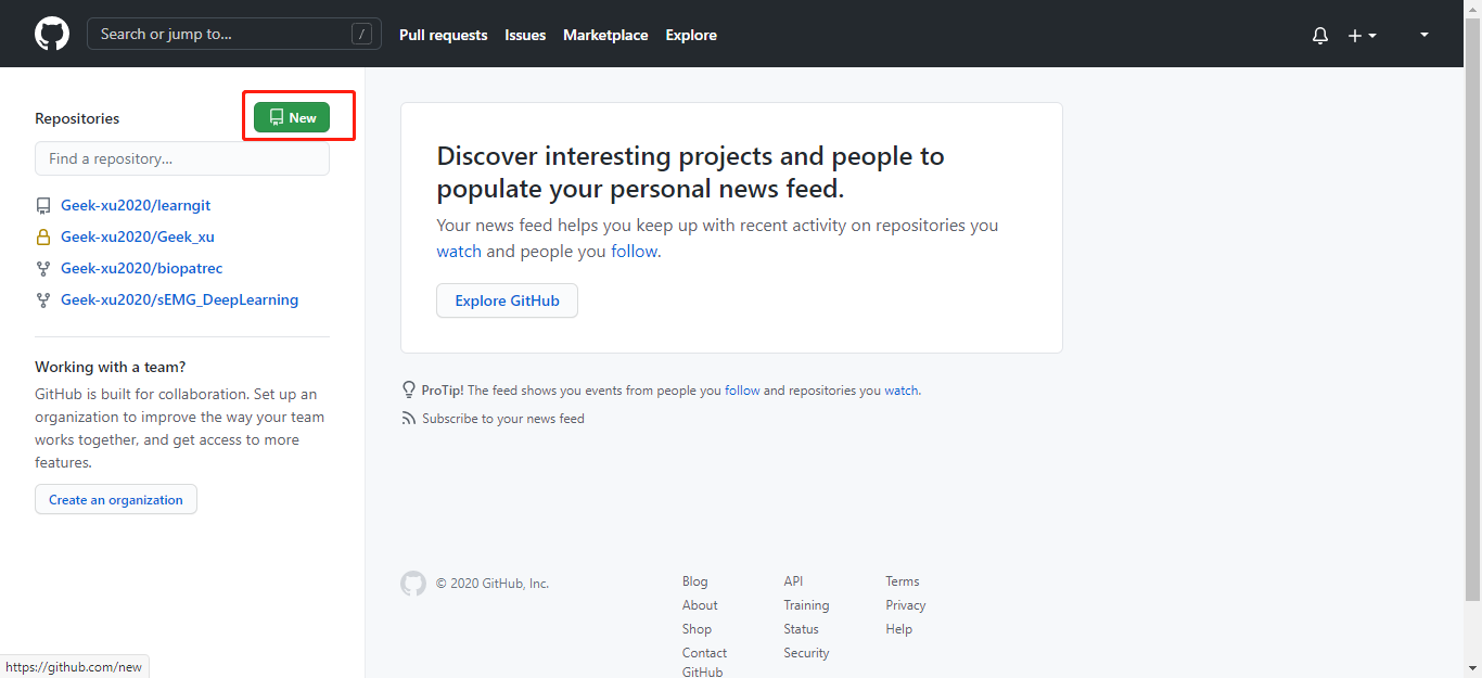 第一步:登陆GitHub,然后,在右上角找到“Create a new repo”按钮,创建一个新的仓库:
