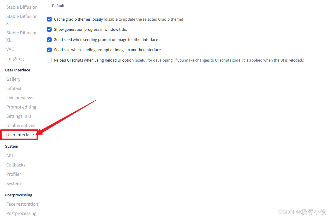 找到并点击User interface