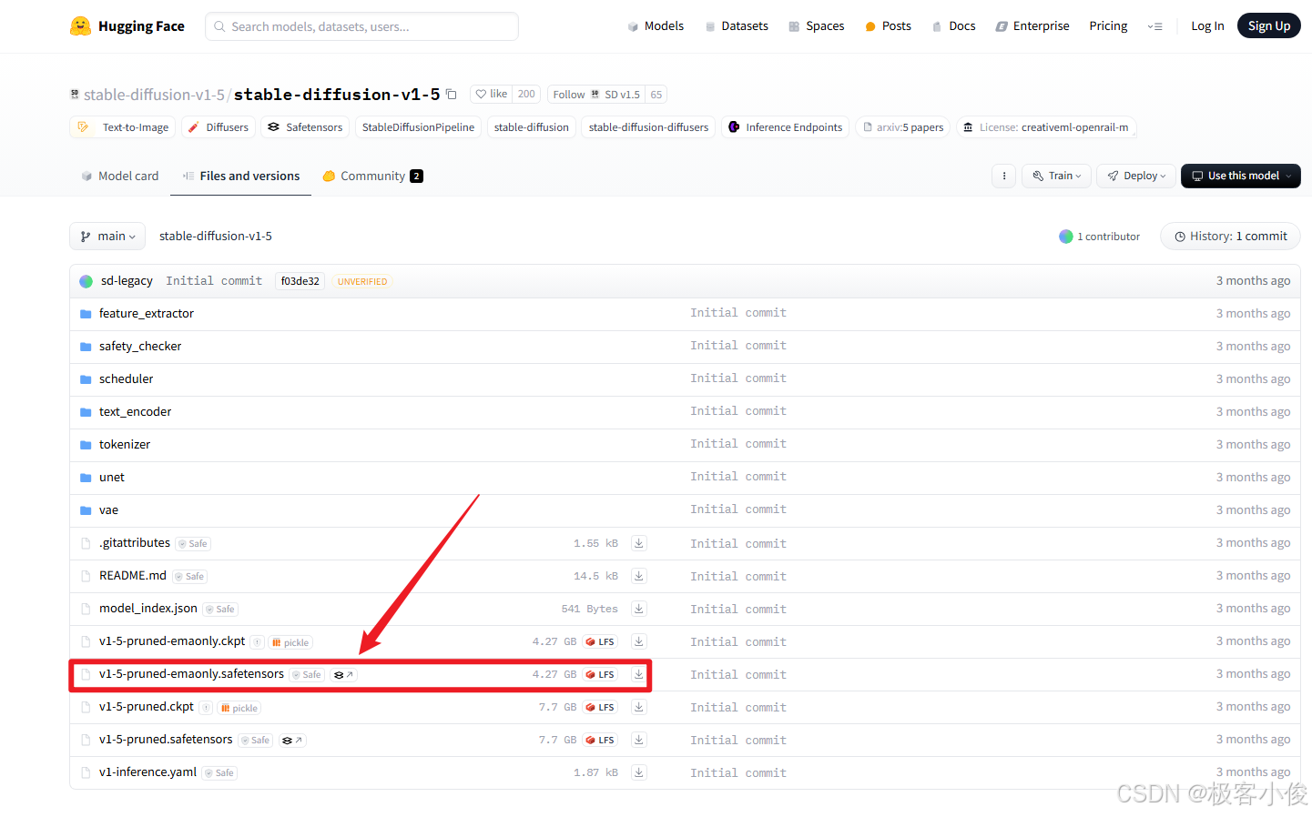 这里我们选择v1-5-pruned-emaonly.safetensors