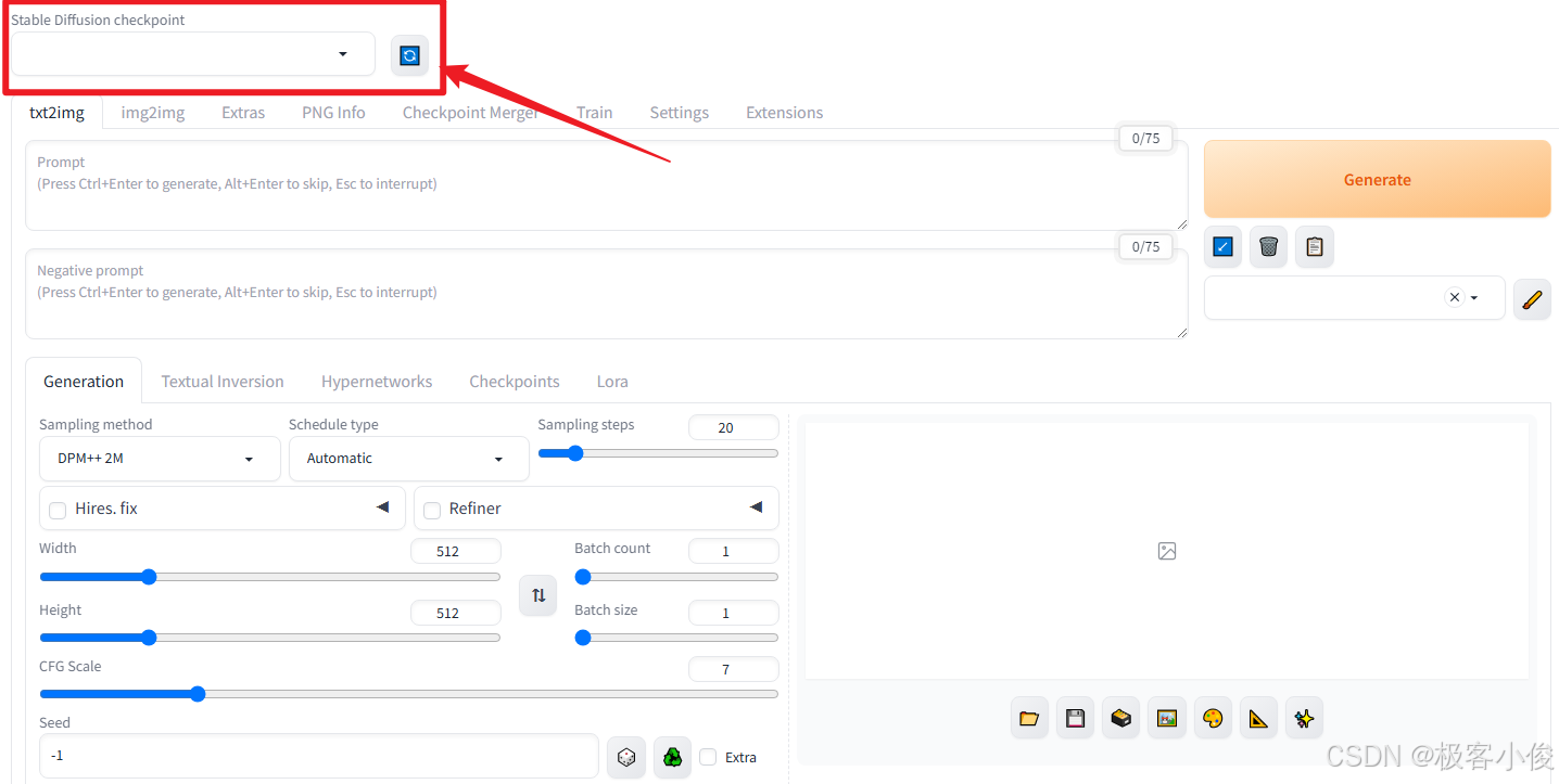 界面中选择txt2img(文生图)