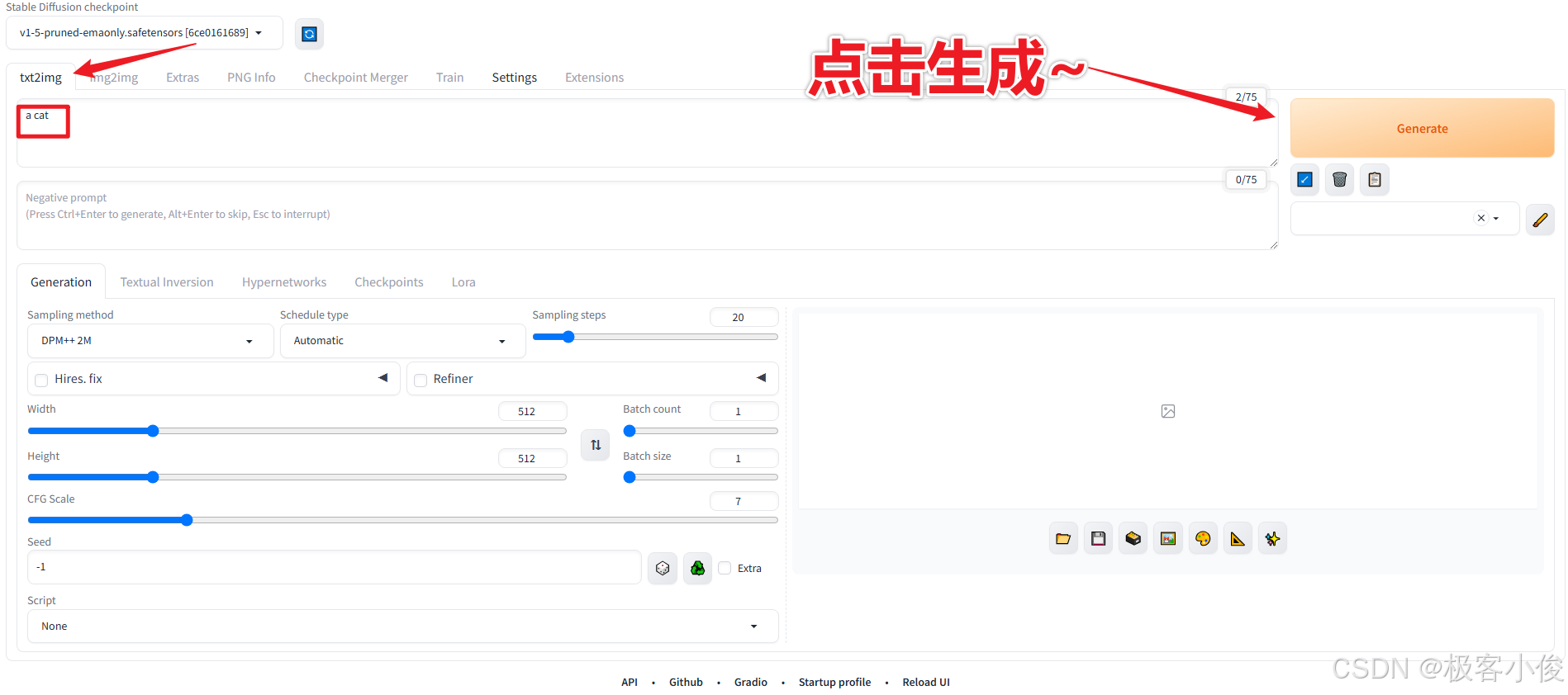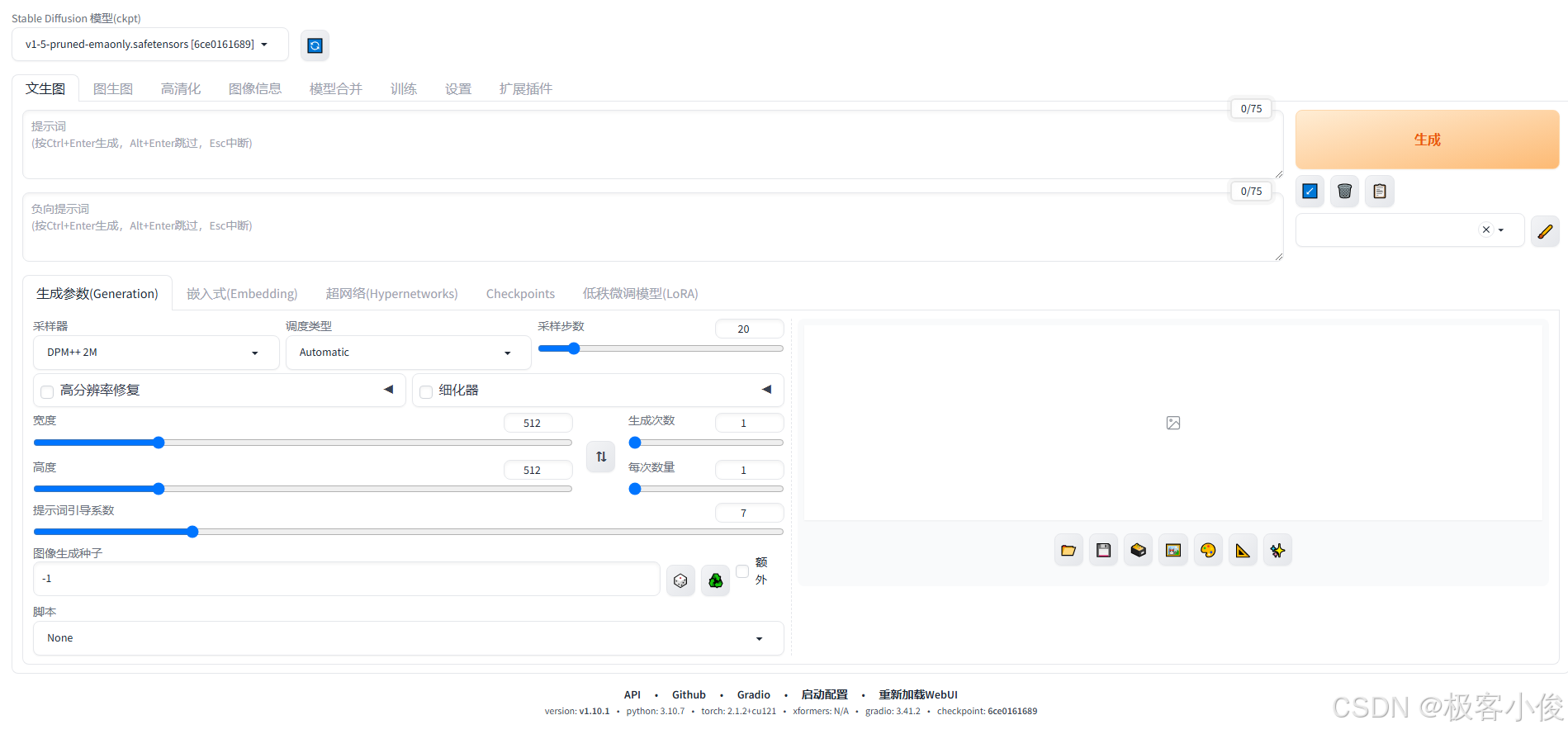 Stable Diffusion 使用WebUI生成你的第一张AI图像 👽