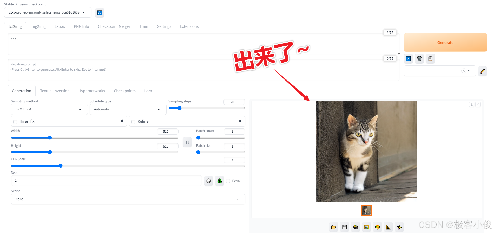 这里我们输入a cat(一只猫)