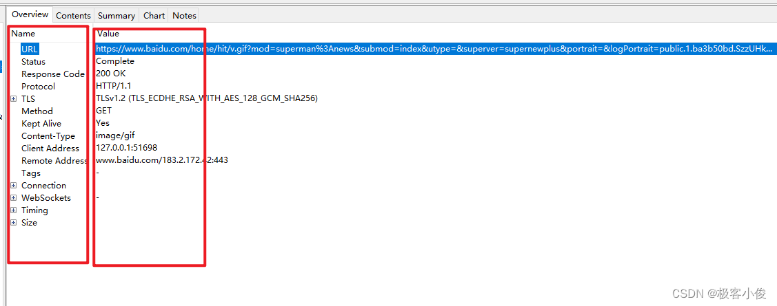 对于当前请求的一个大致信息Overview里面都有显示, 并且以name和value键值对的形式给我们列出来!