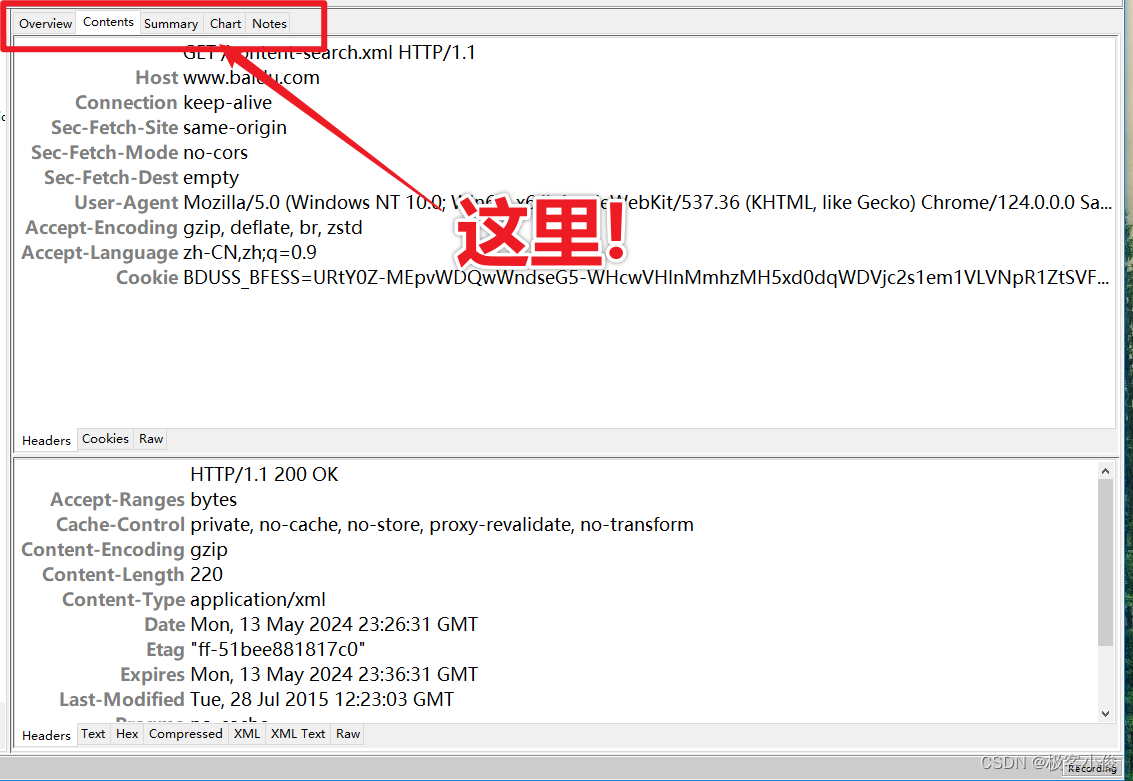 上面属于请求的内容, 下面属于响应的内容