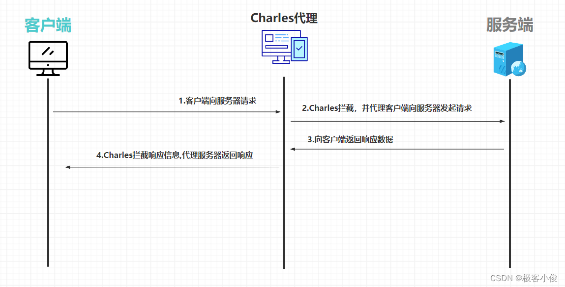 也就是说Charles可以帮助我们监控浏览器发送的 请求与响应的所有信息, Charles就相当于一个代理服务器, 让它来给目标服务器之间建立连接!