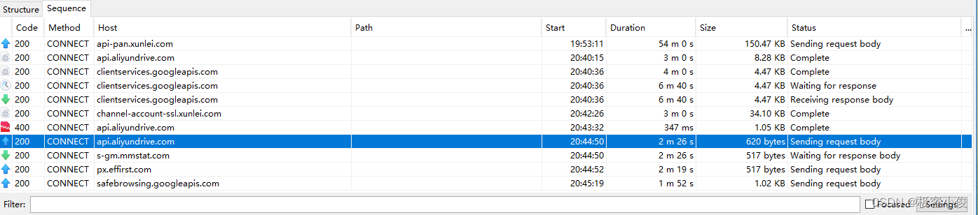 在Charles中抓包请求与响应主要分为两种显示方式: Structure和Sequence 这两种视图形式!