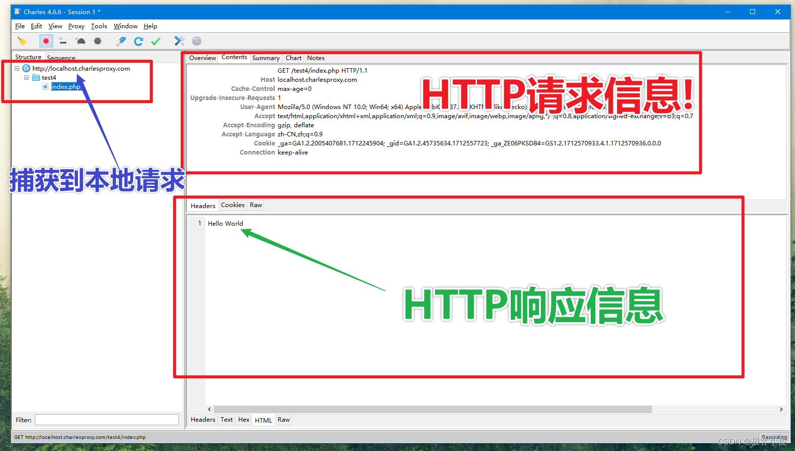 那么Charles就可以来帮助我们完成这个事情,但是首先,我们必须清楚Charles的基本工作环境和界面!