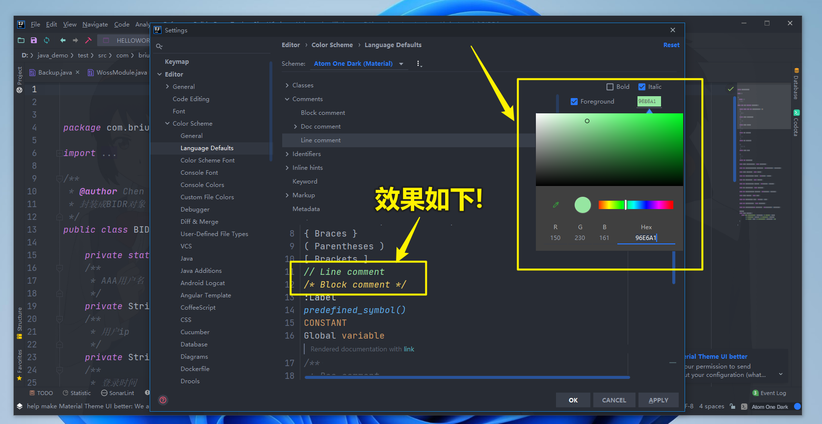 我们知道注释默认都是#59626F是灰色的,但是你也可以调得更好看一点,让颜色搭配更加适合你自己的风格!