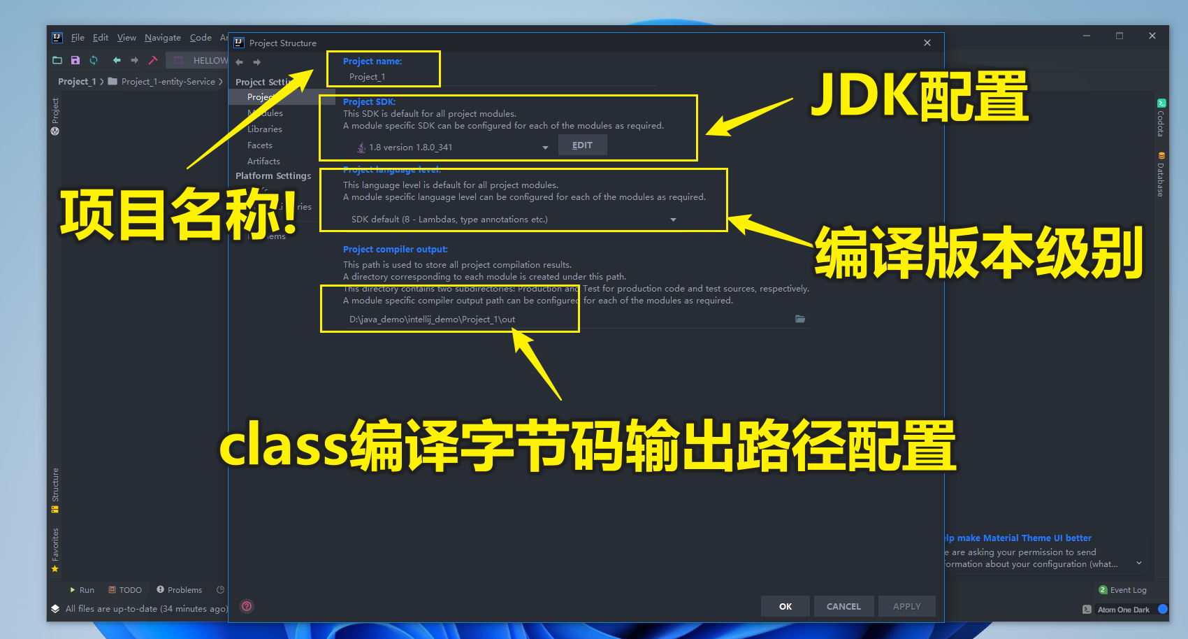 依次展开File---->Project Stucture 然后再左侧选择Project 即可查看