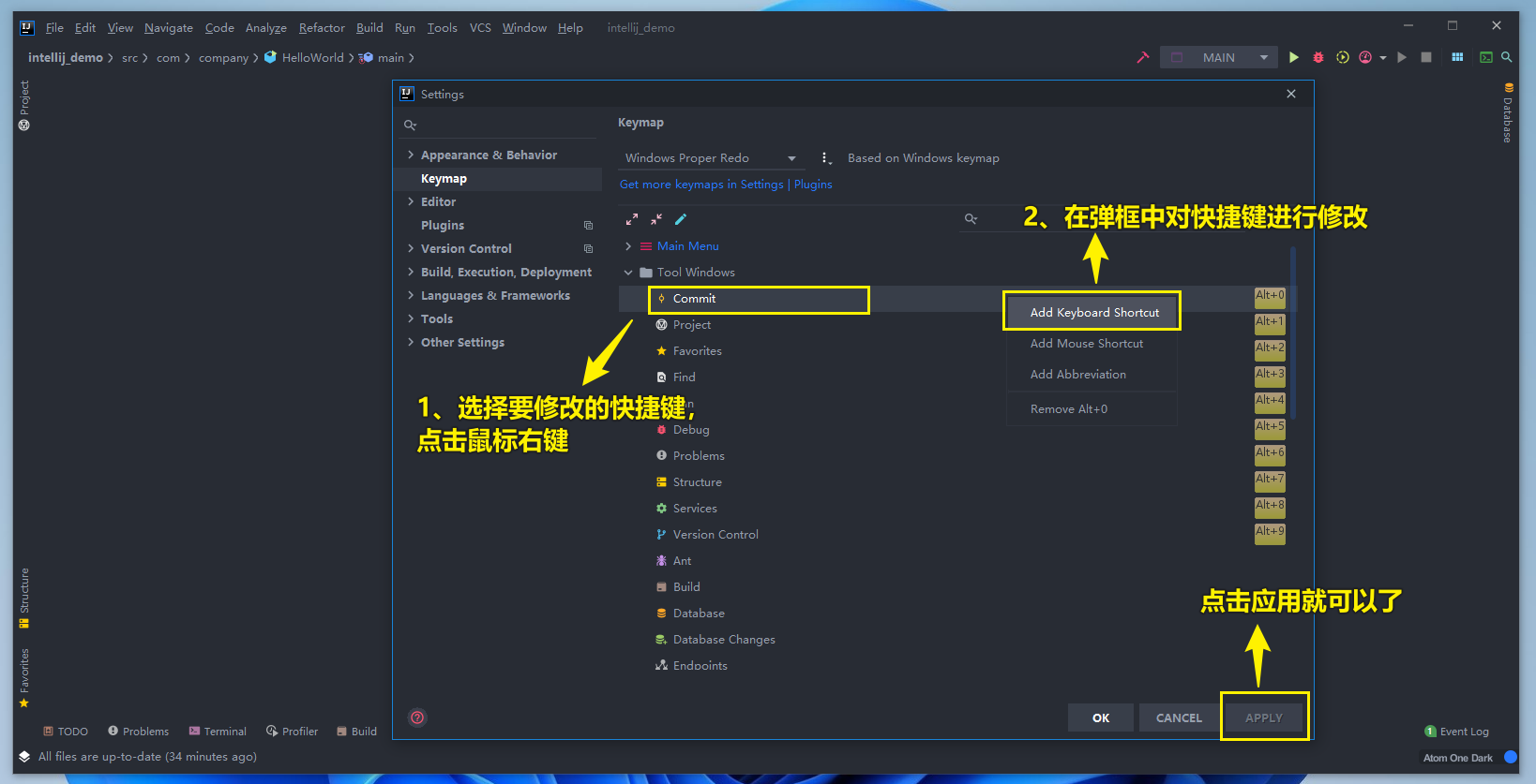 接下来就可以根据自己的需求进行快捷键的修改啦!!