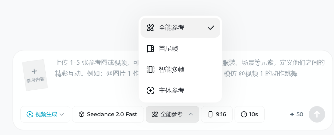 在对话框中直接点击视频生成, 选择Seedance 2.0入口即可使用
