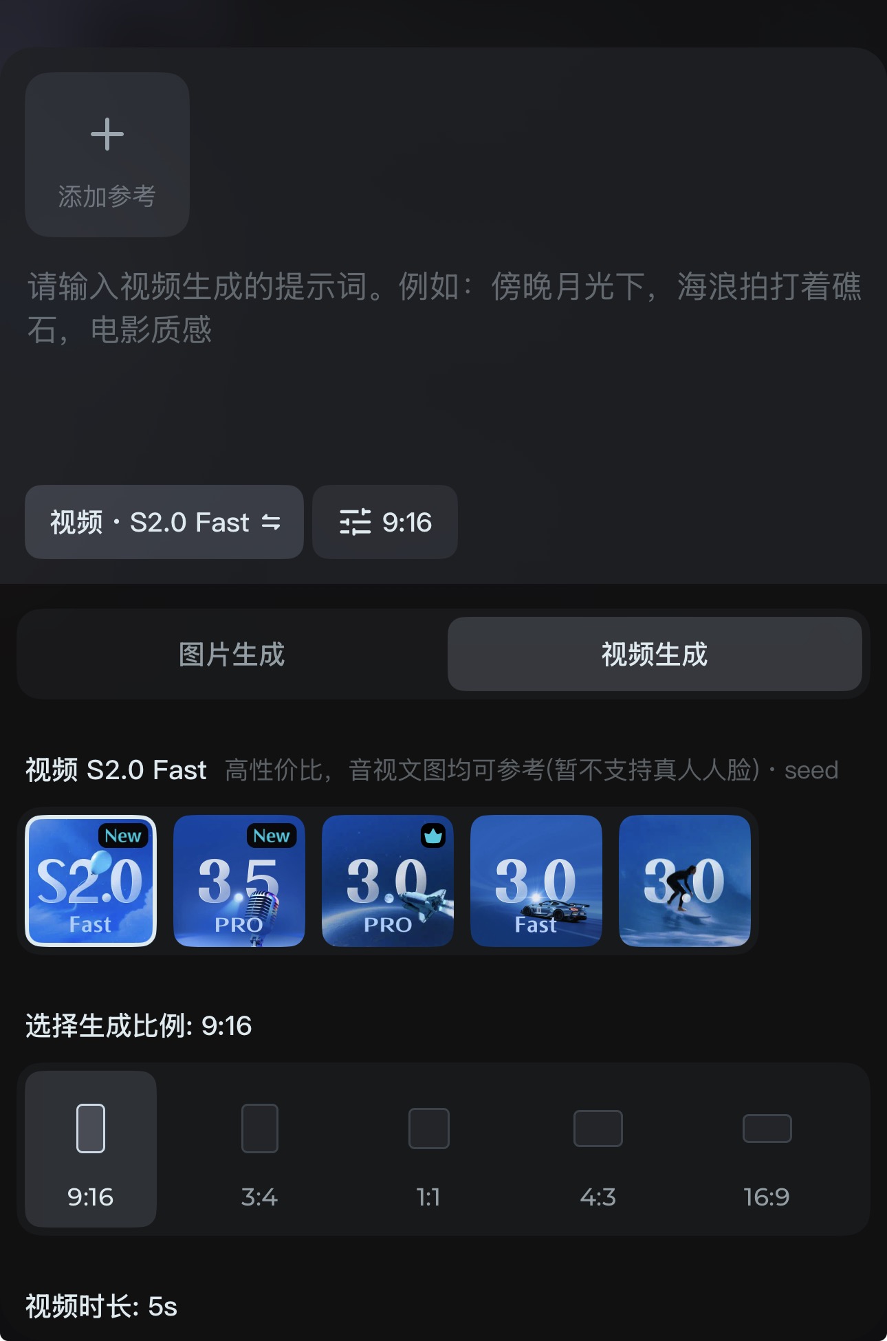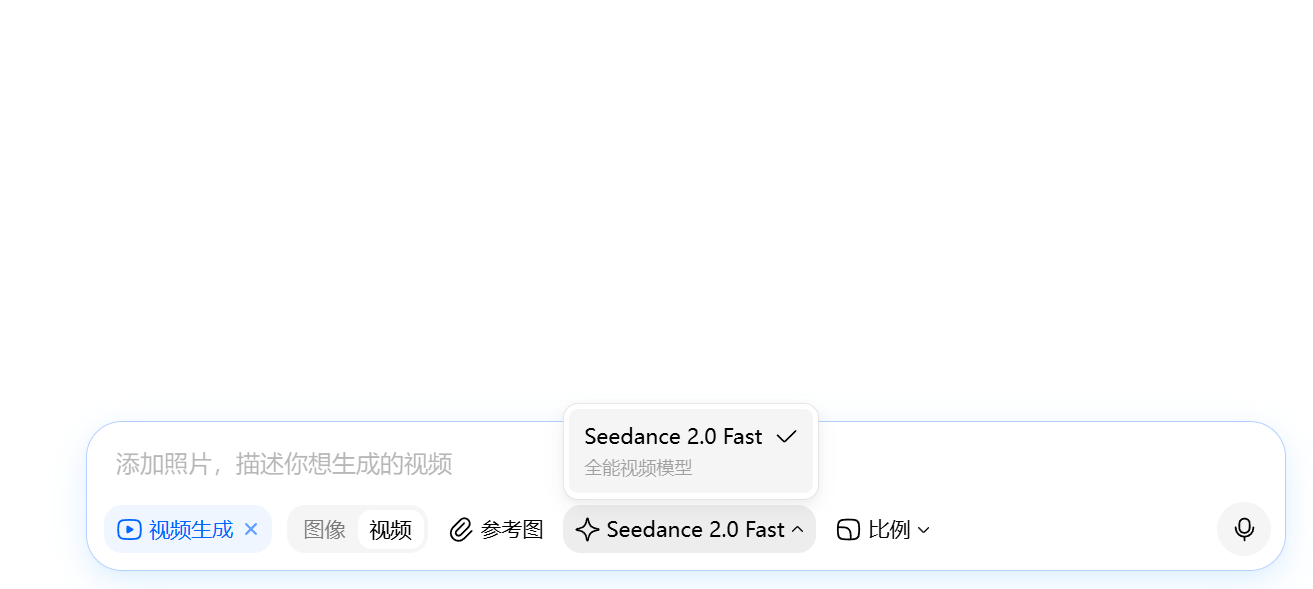 豆包手机端也是同理,选择视频生成中选择2.0 Fast