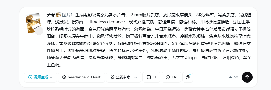 需求2: 根据香水产品图片生成TVC广告