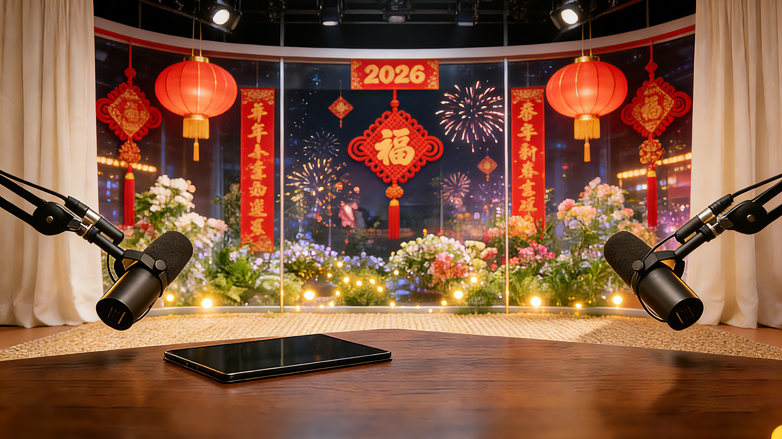 prompt让图1 和 图2 在这个图3演播室中左右坐下,左边为图1, 右边为图2, 表情类似人类,图1(猫)为女生的声音, 图2(狗)为男生的声音, 使用台配口音腔调,保持普通语速不要太快,并且带有一定的肢体语言, 然后说着以下台词!