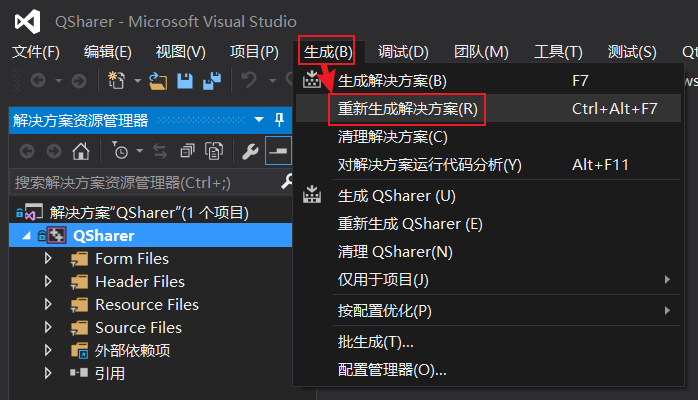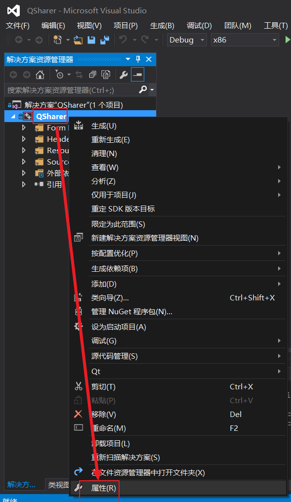 这里以我的 QSharer 这个项目为例,其它项目类似