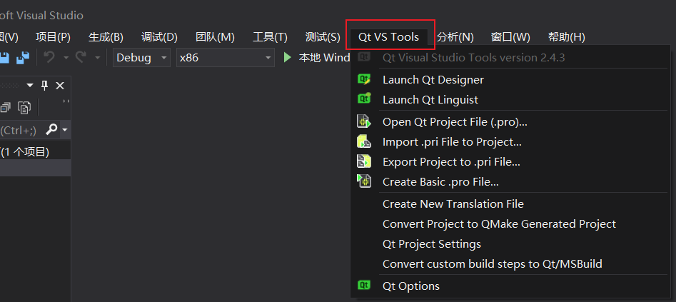 确认安装即可,若安装成功则打开 VS2015 的顶端菜单会多出一个Qt VS Tools