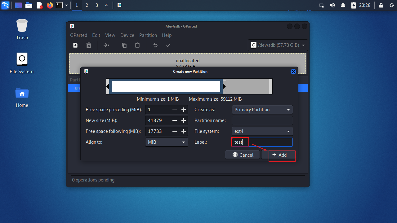 在 create new partition 对话框中,可以拖拽要格式化的磁盘边界: