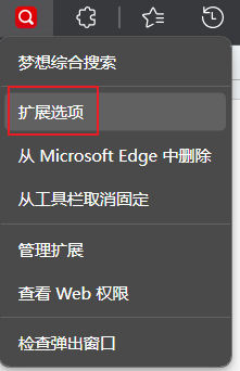 配置方法:点击右上角扩展图标,菜单选择扩展选项,