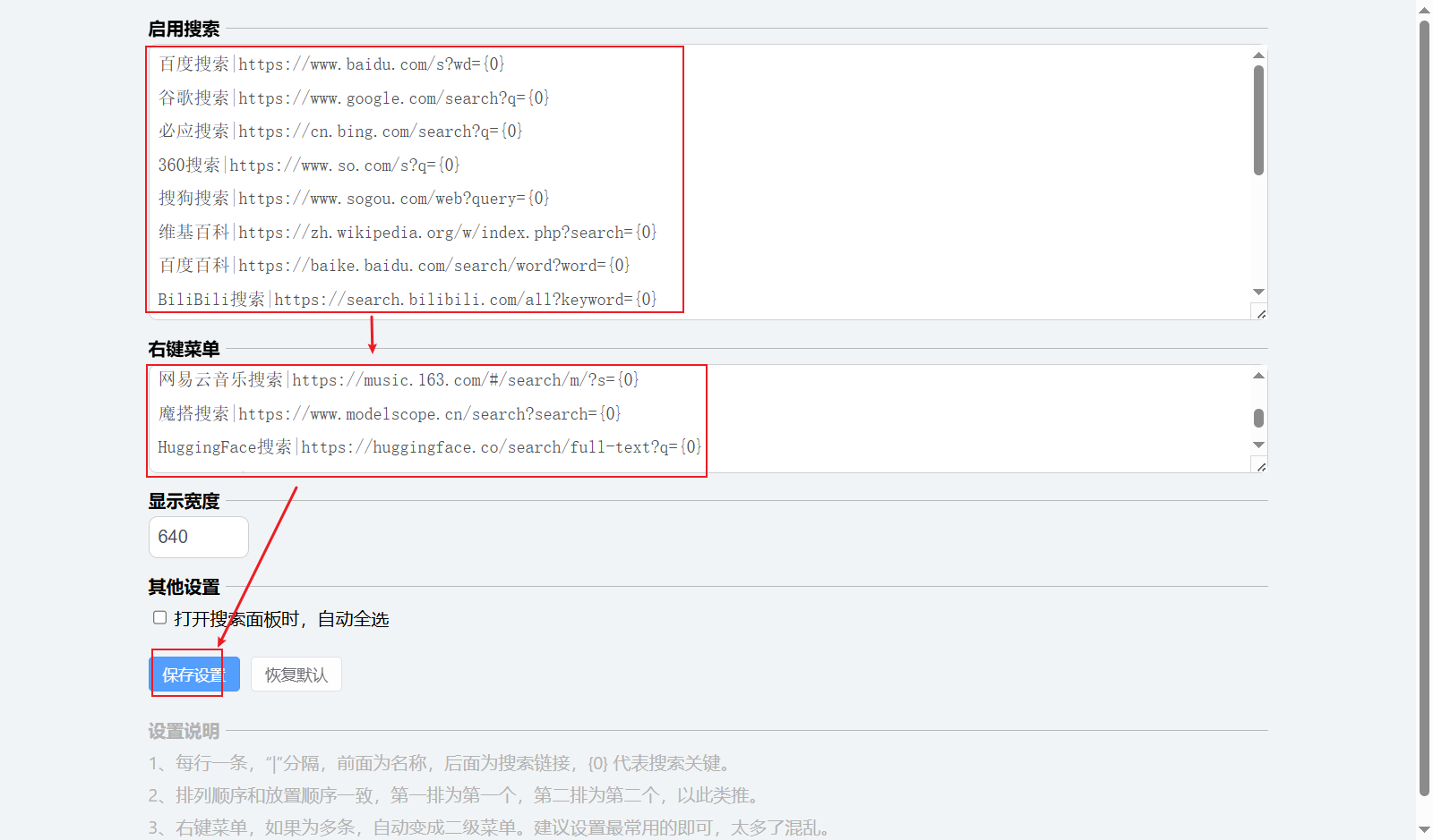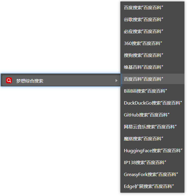 推荐使用 edge 扩展 梦想综合搜索 可自定义选中右键搜索菜单一键搜索,以下是搜集的常用搜索引擎列表: