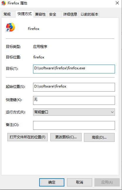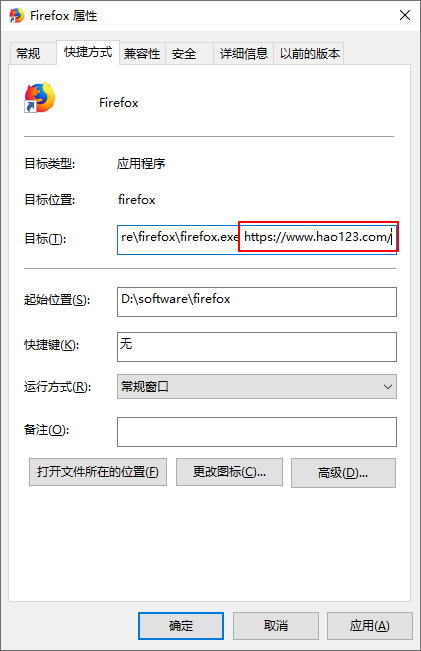 3.会发现目标那一栏在软件在本机的位置后有另外网站的地址