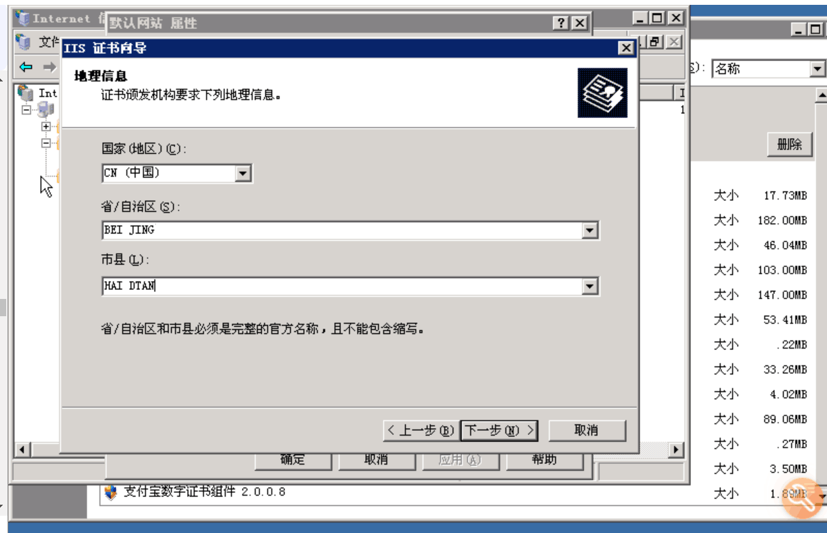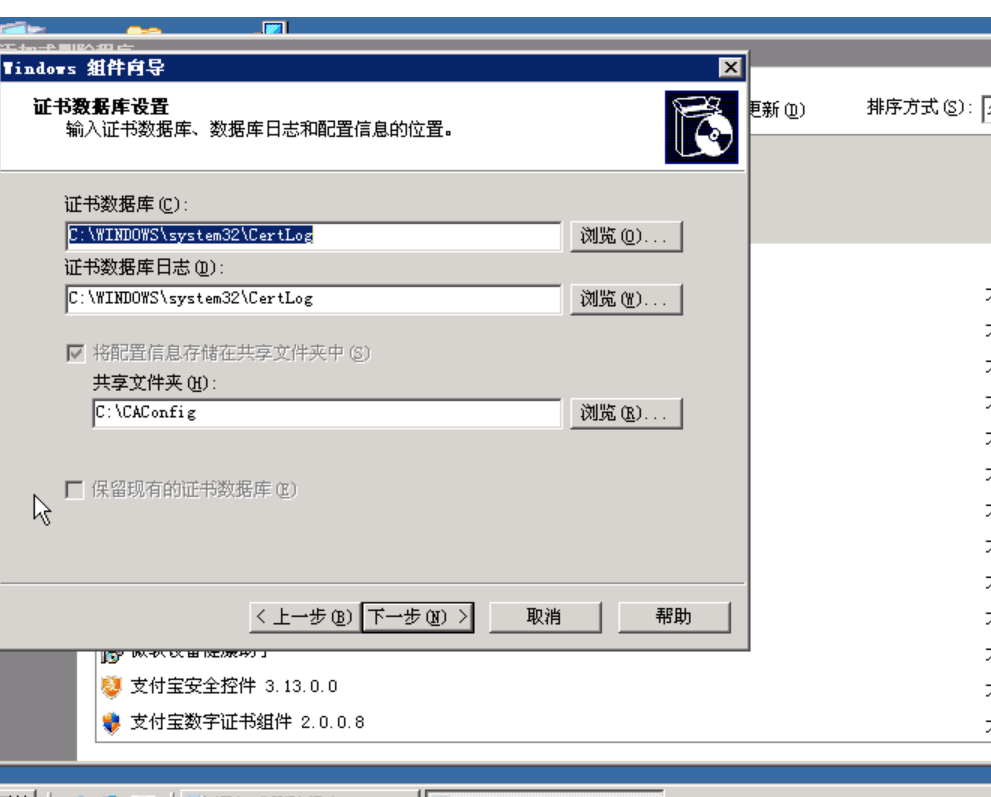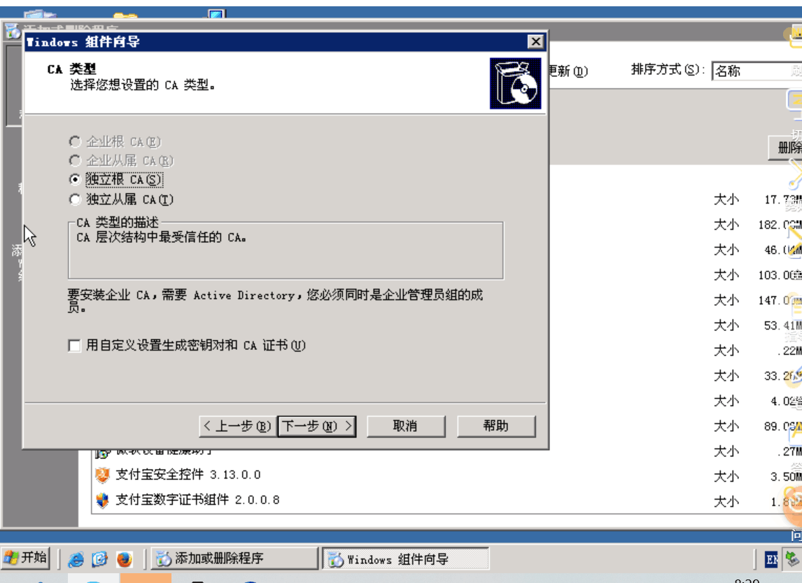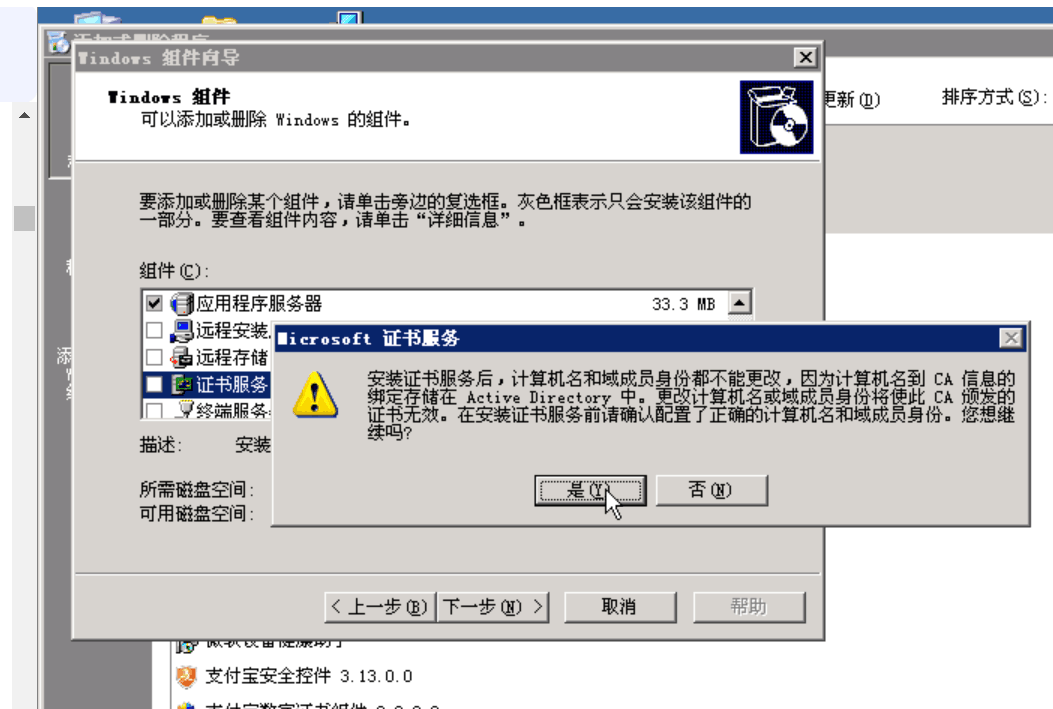 安装证书服务: