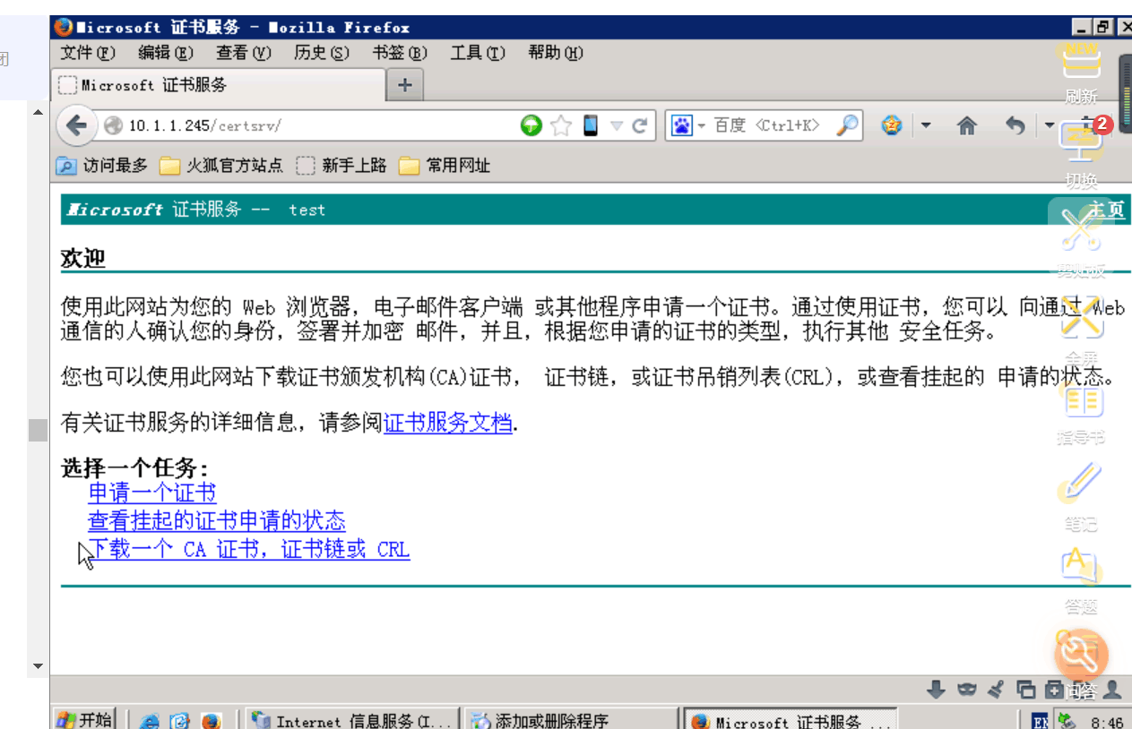 CA服务器:数字证书认证中心,HTTPS服务器:向用户证明网站的真实身份,IIS:提供信息服务,microsoft证书服务:提供证明等。