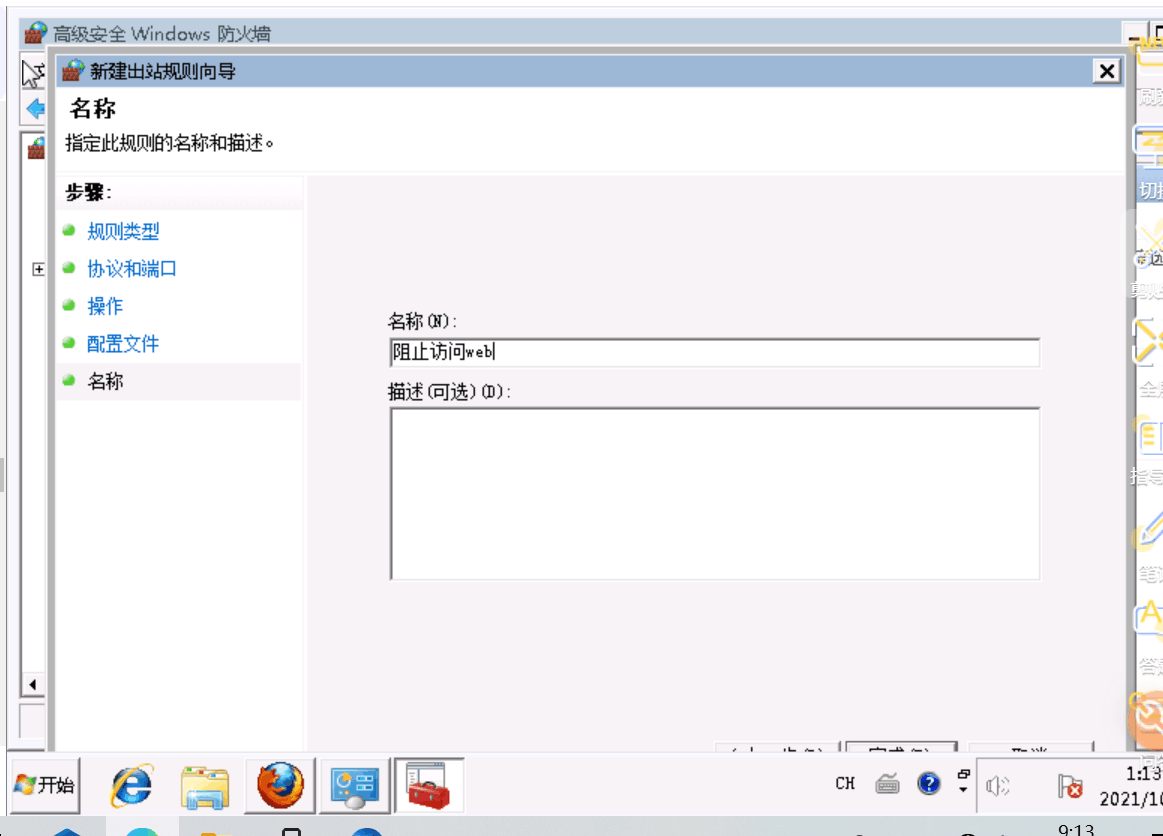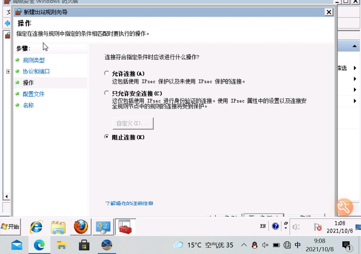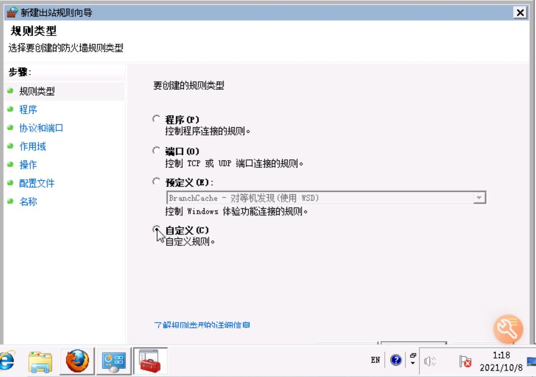 1.新建出站规则,选择TCP协议,端口80,配置成允许访问。