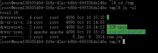 3.登录worm1,查看/tmp目录