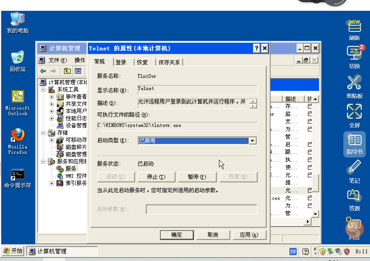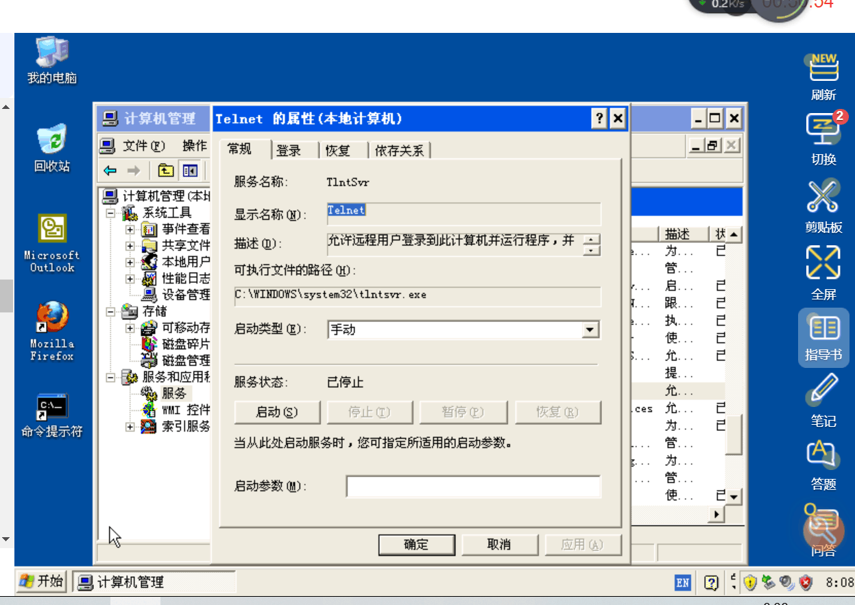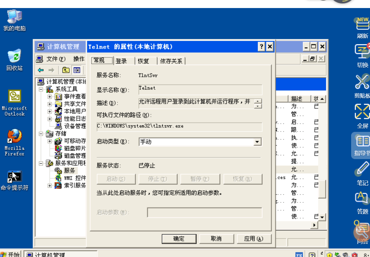 Telnet协议是Internet远程登录服务的标准协议和主要方式。它为用户提供了在本地计算机上完成远程主机工作的能力。在终端使用者的电脑上使用Telnet程序,用它连接到服务器。终端使用者可以在Telnet程序中输入命令,这些命令会在服务器上运行,就像直接在服务器的控制台上输入一样。可以在本地就能控制服务器。要开始一个Telnet会话,必须输入用户名和密码来登录服务器。Telnet是常用的远程控制Web服务器的方法。