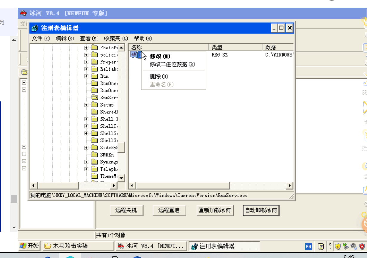 2、 通过手动删除木马,掌握检查木马和删除木马的技巧。