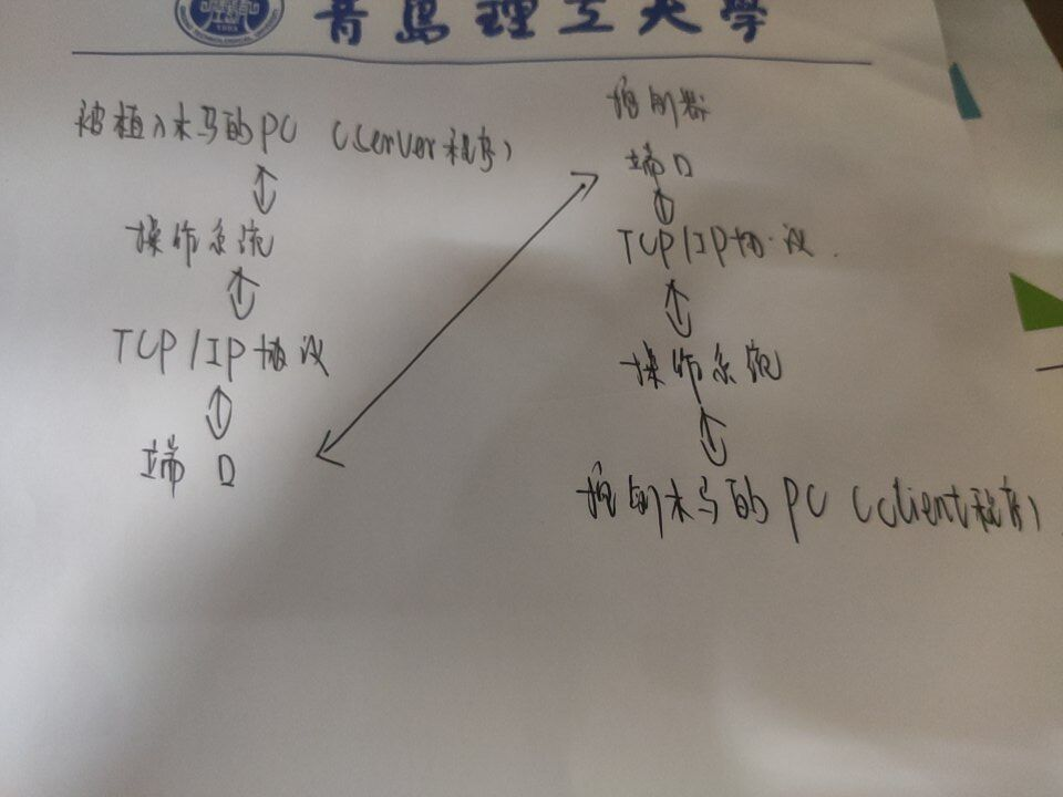 一般木马都采用C/S(client/server,即服务器/客户端)运行模式,因此它分为两部分,即客户端和服务器端木马程序。其原理是,当服务器端程序在目标计算机上被执行后,一般会打开一个默认的端口进行监听,当客户端向服务器端主动提出连接请求,服务器端的木马程序就会自动运行,来应答客户端的请求,从而建立连接。第一代和第二代木马就采用这种方式。