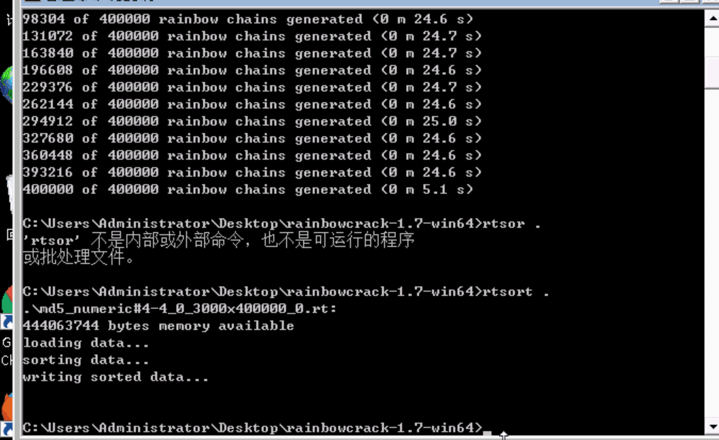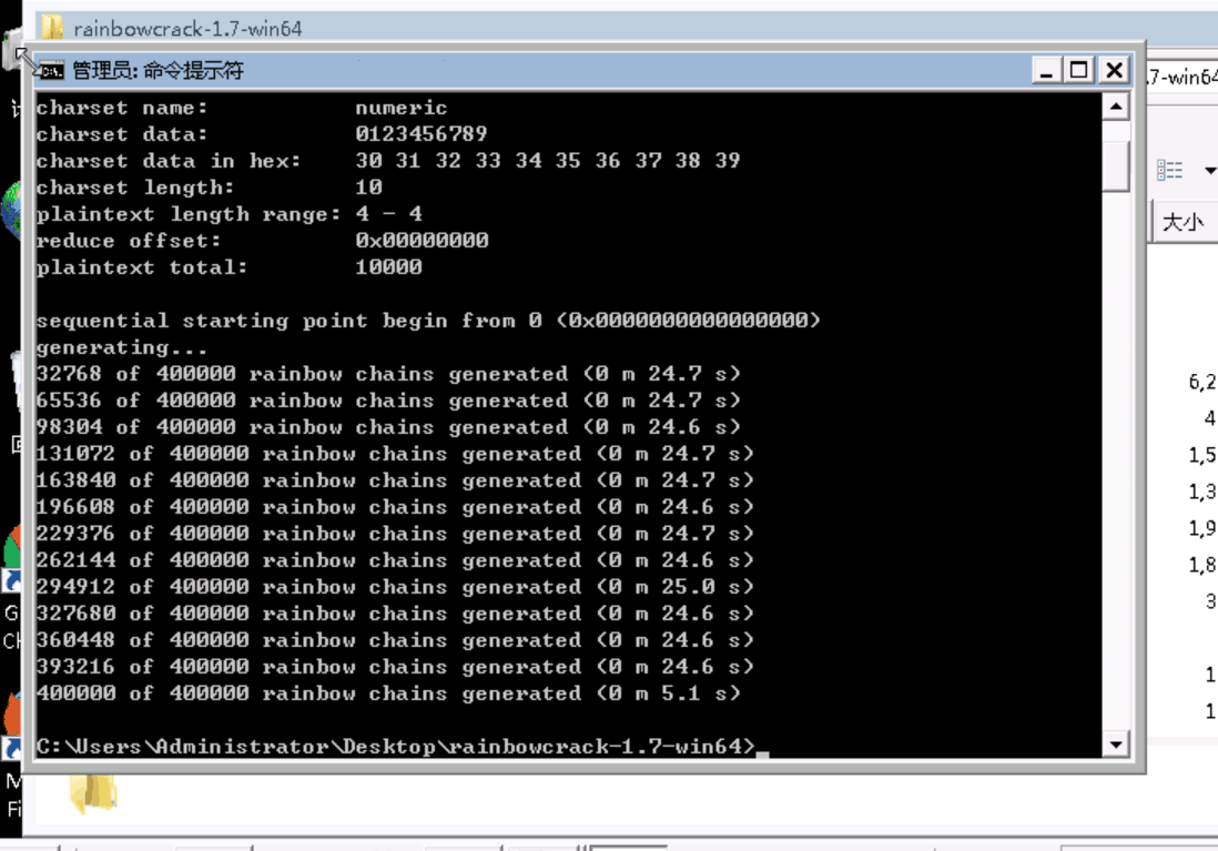 任务描述:使用给定的彩虹表生成工具RainbowCrack,生成破解四位数字组合MD5值的彩虹表,并对实验一中的MD5字符串进行破解。